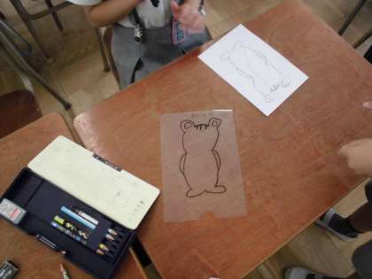 思い思いの形を描き、色をのせていくことでスタンプにしていきます。