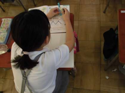 コンパスは円を描くだけでなく、長さをはかり取る時にも使えることを学んでいます。