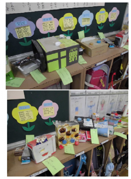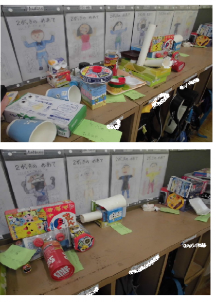 空き箱を活用して、作品を仕上げていました。