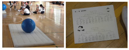 相撲という場を設定し、力強く押し込むという動きのために直接相手に触れるのではなく、ボールを挟んで押し合うという形をとっています。