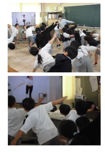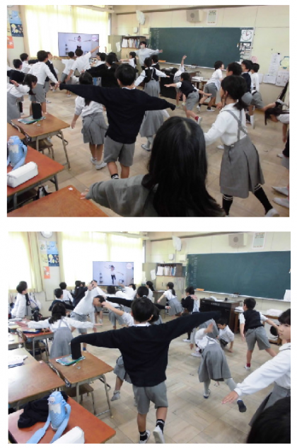 教室から楽しそうな声がするので、のぞいてみるとバランスをとる運動をしていました。