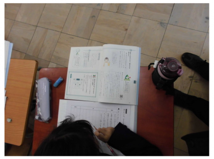 「私のすきな時間」を発表するための原稿を書いている様子です。