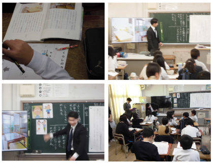 「くらしの中の和と洋」を要約し、紹介文を書く授業の様子です。