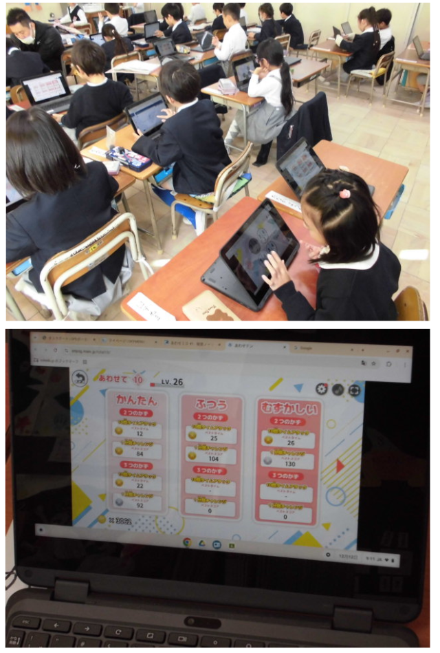 パソコンを使い、デジタルドリルで学習をしている様子です。
