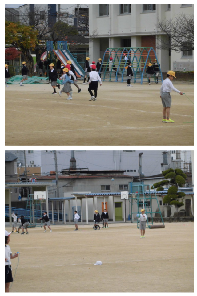 運動場で遊んだ後の手洗い、うがいを忘れずに。