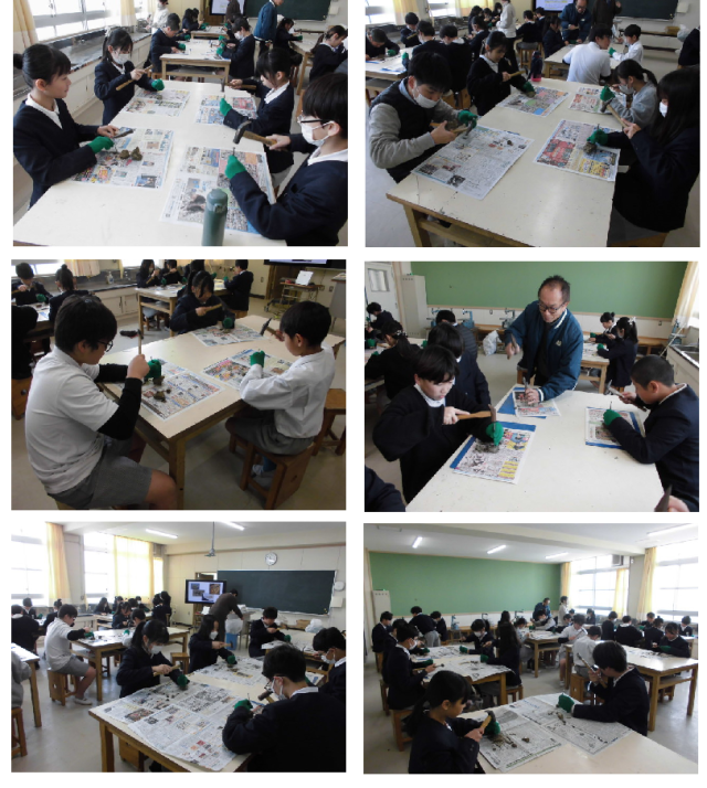 教育センターの田中指導主事に来校いただき、化石発掘(?)の授業を行いました。