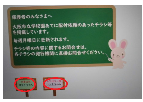1,本校HP上部のイベントチラシ掲載ページをクリッする。