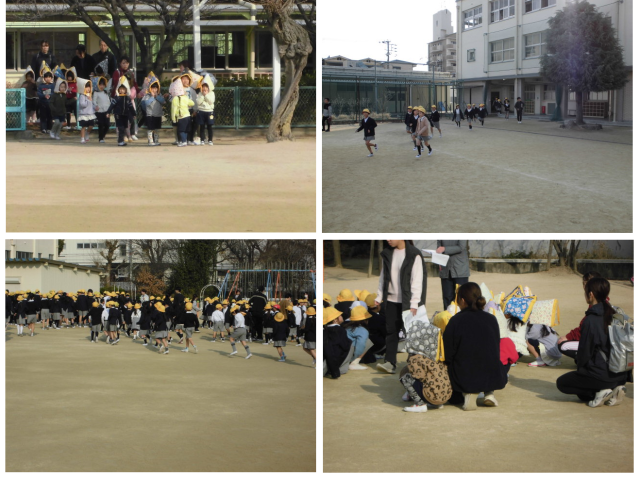 榎本幼稚園の園児の皆さんも一緒に訓練を行いました。
