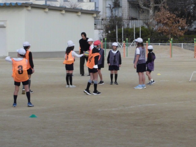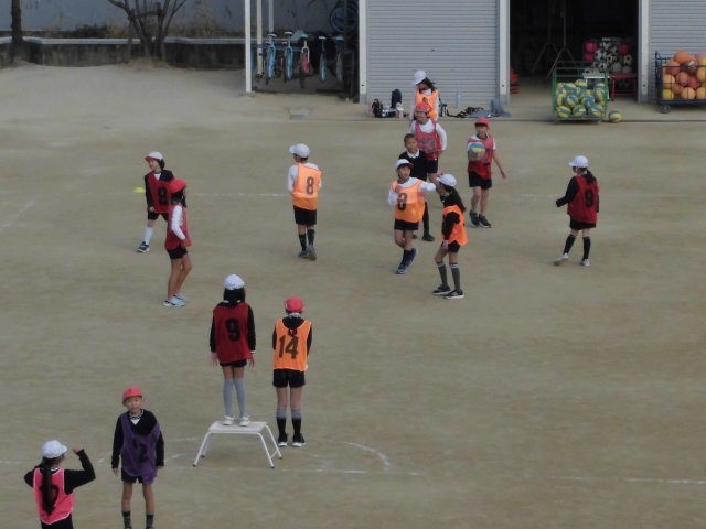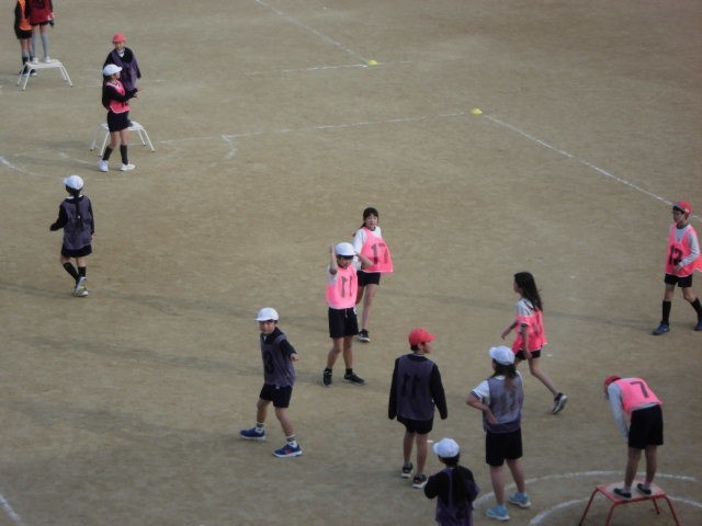 ゴール型のゲームである「ポートボール」の学習の様子です。