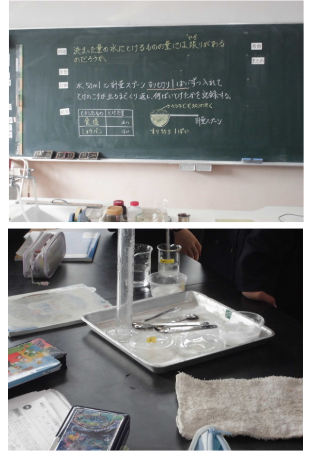 物の溶け方の実験の様子です。