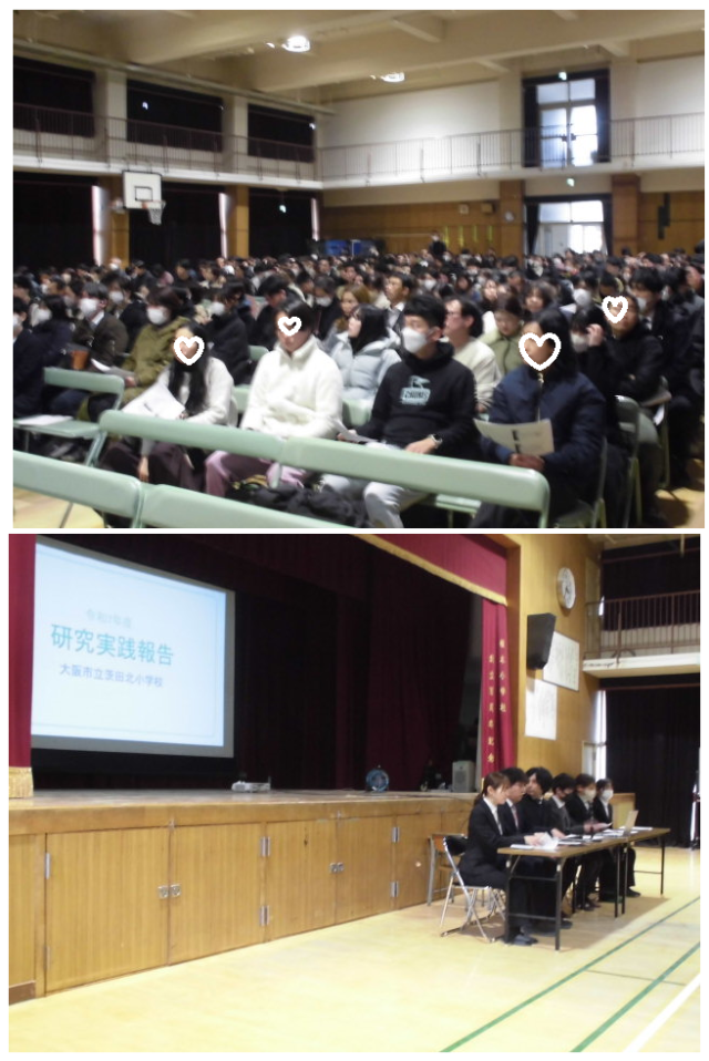 茨田北小学校は国語、茨田南小学校は算数の1年間の研究の成果と課題を発表しました。