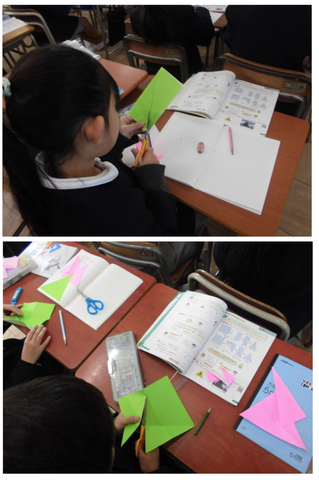 実際に折り紙で二等辺三角形を作ることで、二つの辺の長さが等しいことが理解できます。