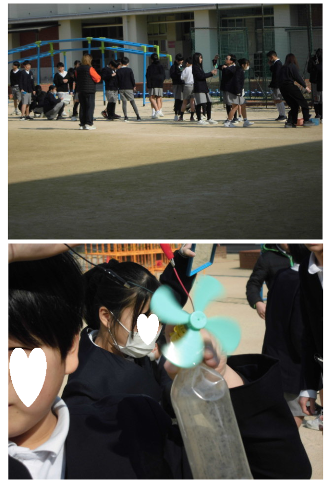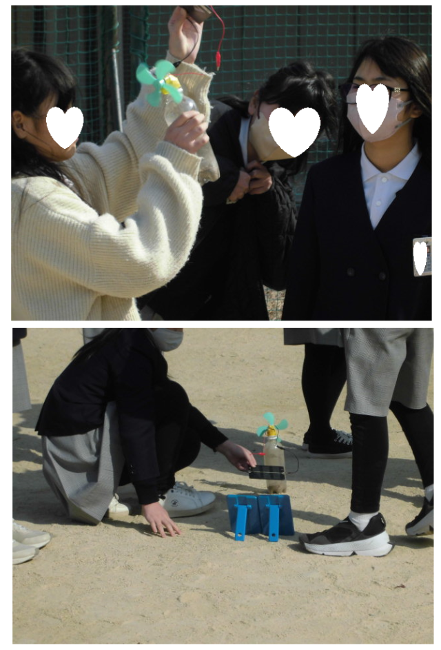 太陽電池を使って、発電の実験をしています。