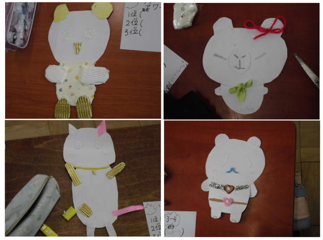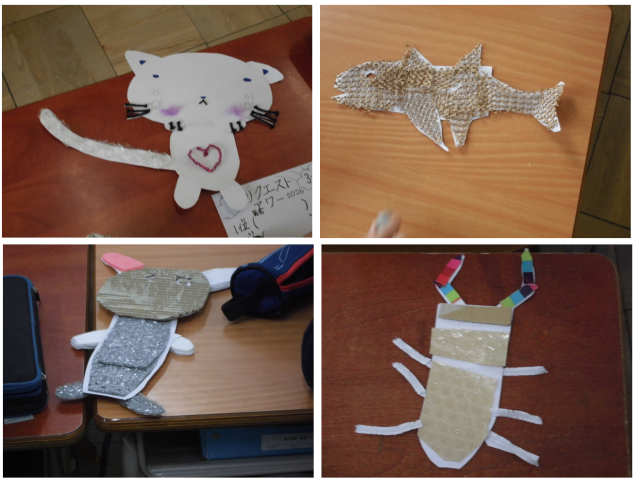 紙以外にもいろいろな材料を使うことで、作品の変化からくる面白さを表現しています。
