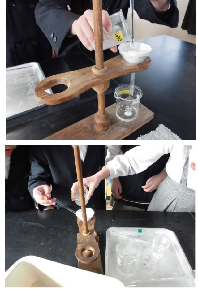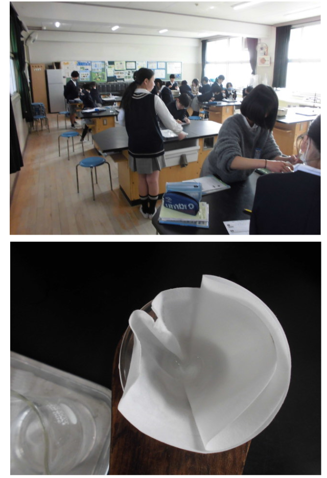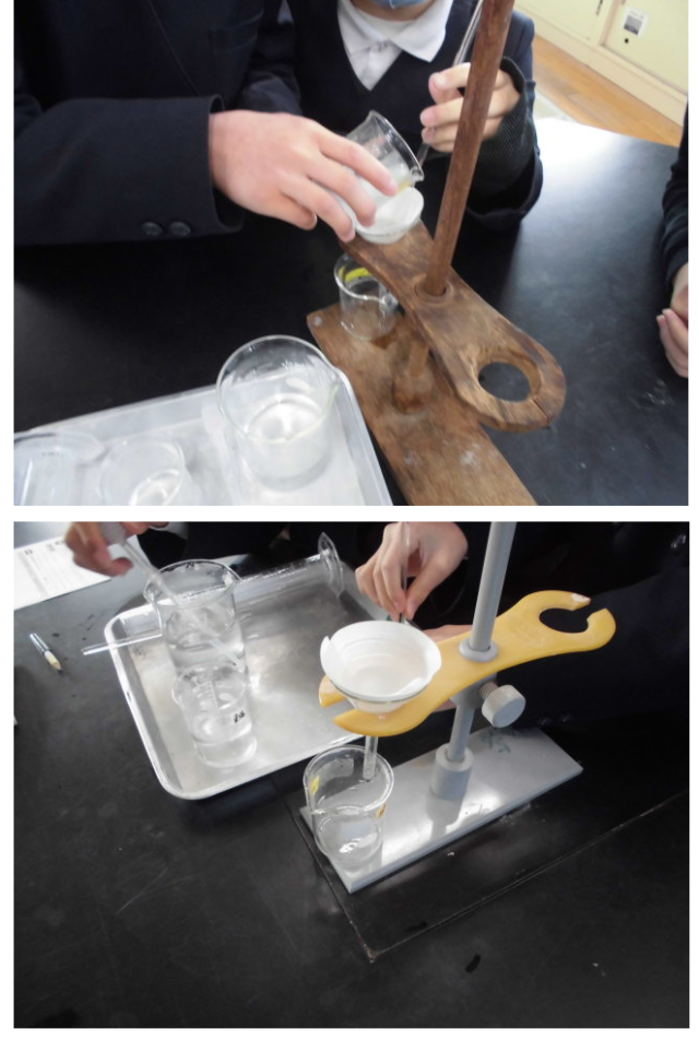 ろ過することによって、溶けていたものが取り出せるかを確かめています。