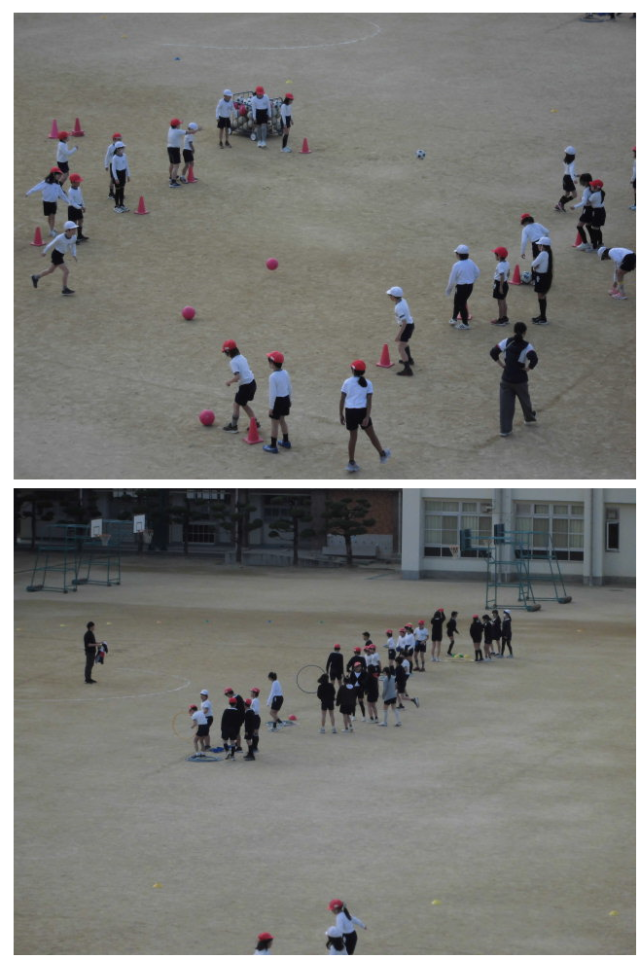 この写真は、3年生と6年生の体育の様子です。
