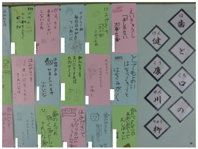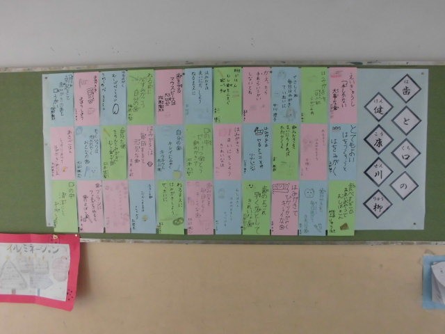 2月の掲示は、子ども達が詠んだ「歯と口の健康川柳」です。
