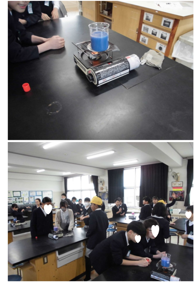 熱の伝わり方の実験の様子です。