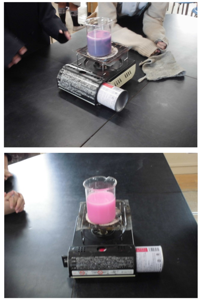 熱することで、青からピンクに色が変わります。
