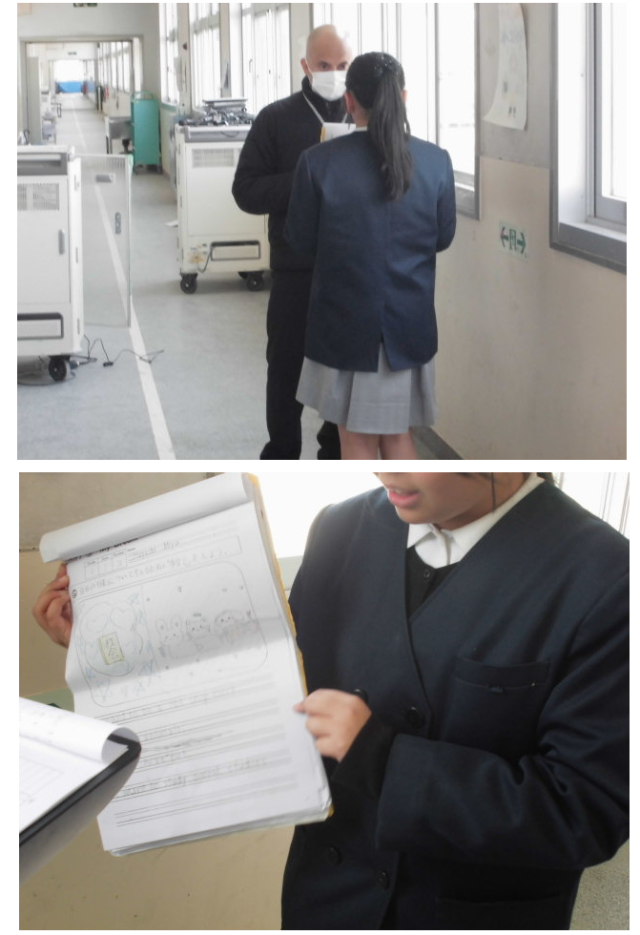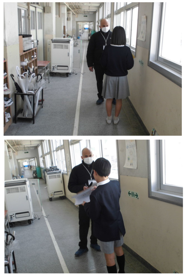 C-NETの先生を相手にコミュニケーションのテストを行っている様子です。