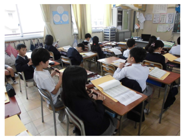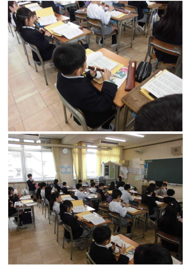 どこからともなく聞こえるリコーダーの音色、美しい音色につられて探すと3年生の教室からでした。