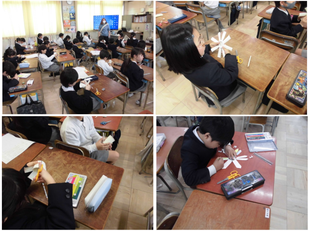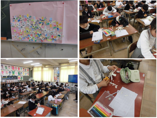 6年生の卒業をお祝いする掲示物の作成の様子です。