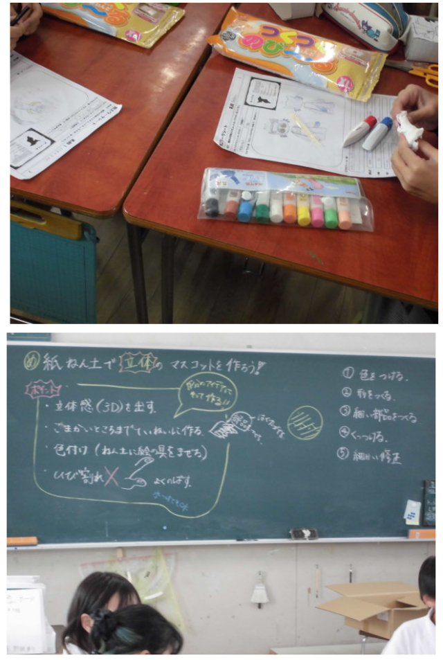 紙粘土を使って立体のキャラクターを作っています。