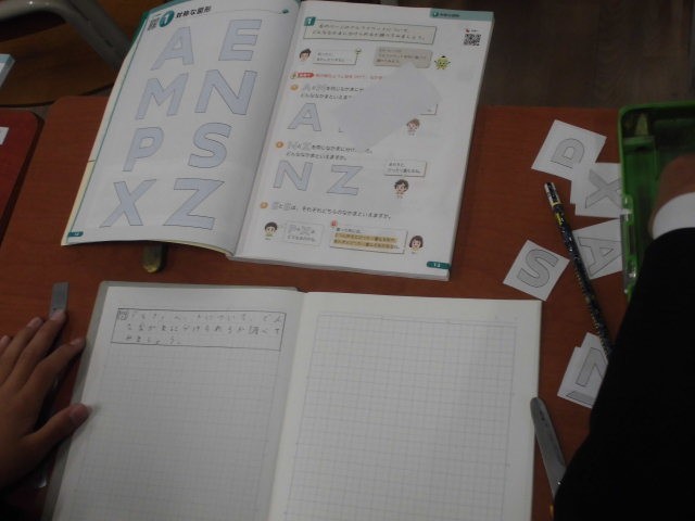 対称な図形の学習の様子です。