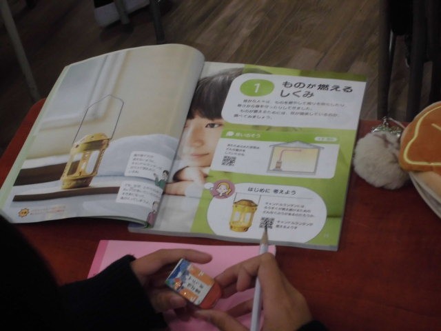 物の燃え方の学習の様子です。