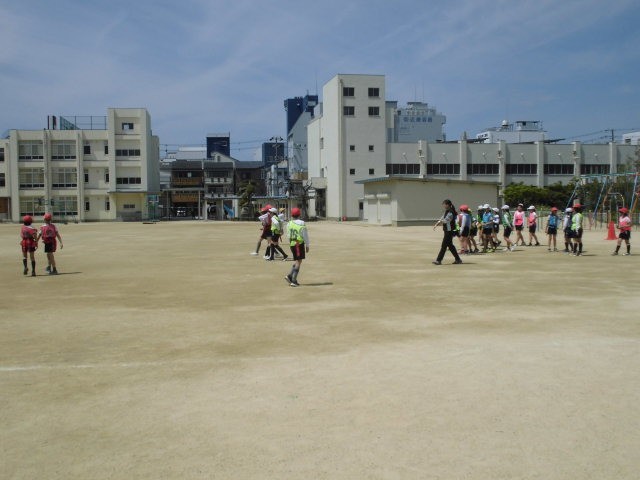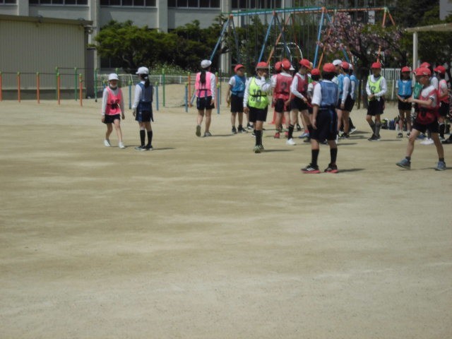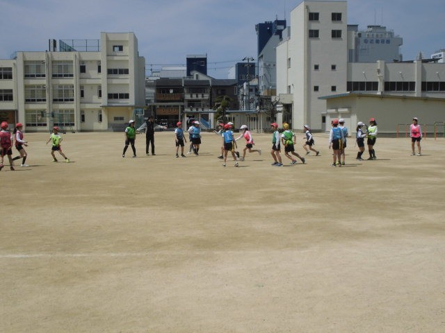 初夏のような陽気の中、「しっぽ取りおに」をしている様子です。