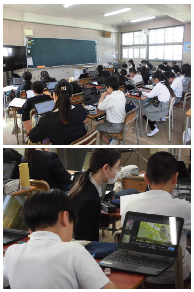 そのために各々が春を感じる題材を端末で調べて選んでいます。