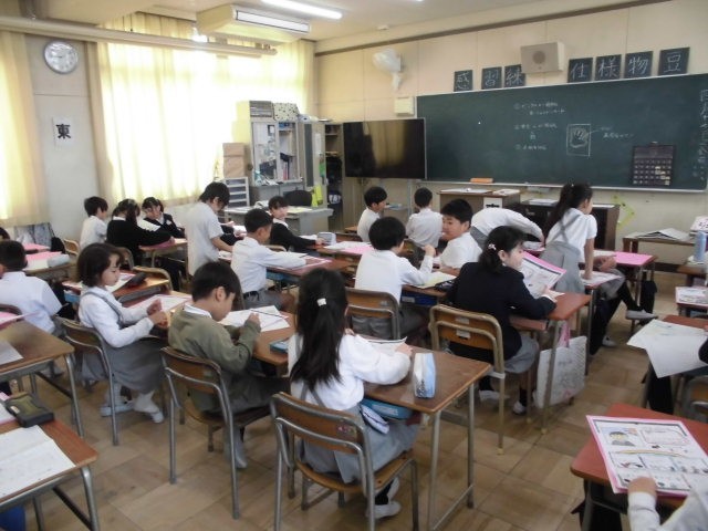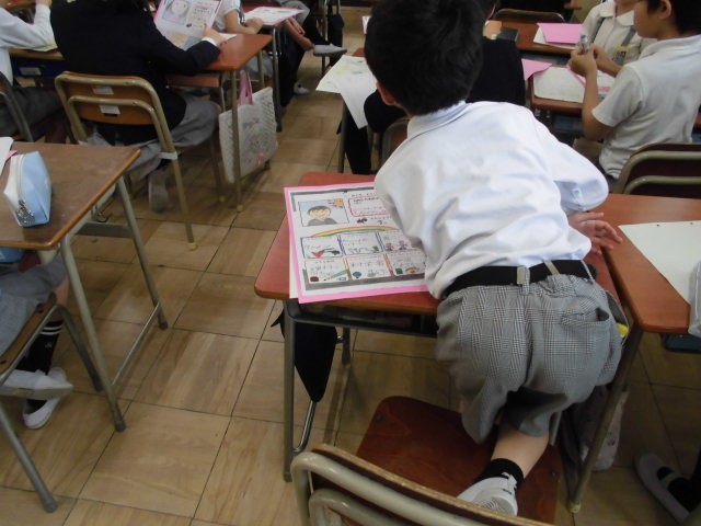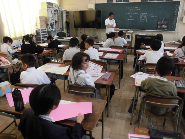 完成したら背面黒板に掲示して、お互いのことを知るきっかけにします。
