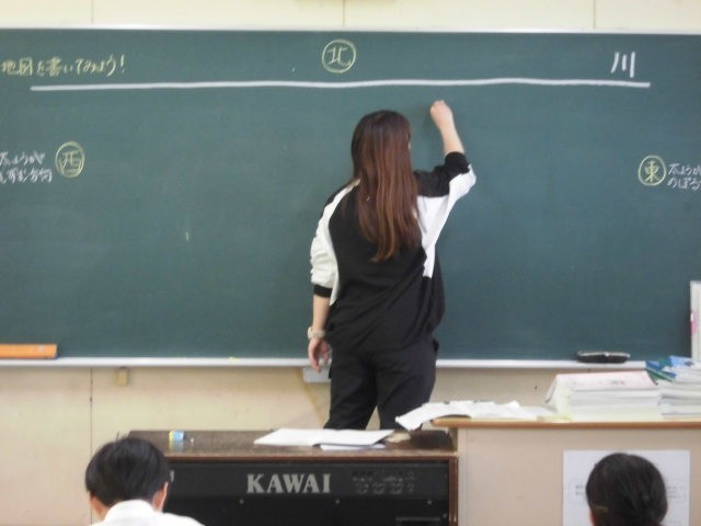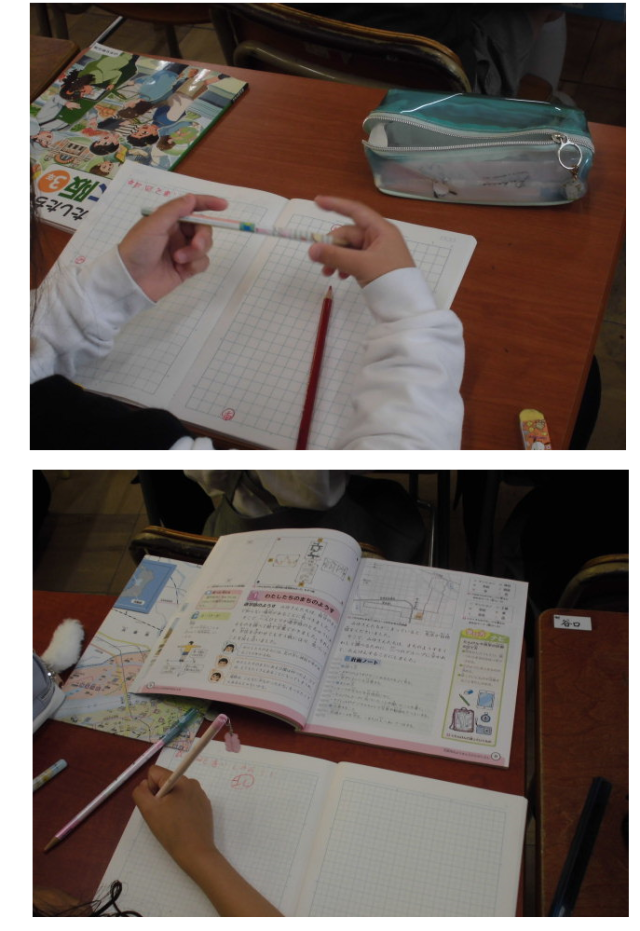 学校の周りの地図を描いている様子です。