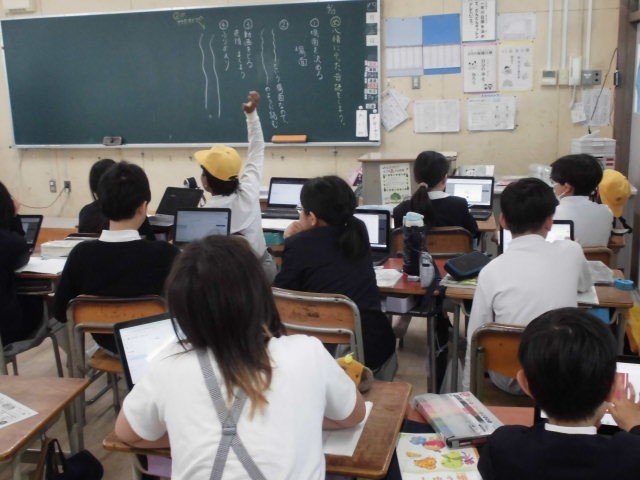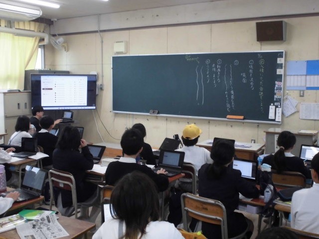 5年生では、課題の動画を端末で先生に提出する方法を学んでいました。