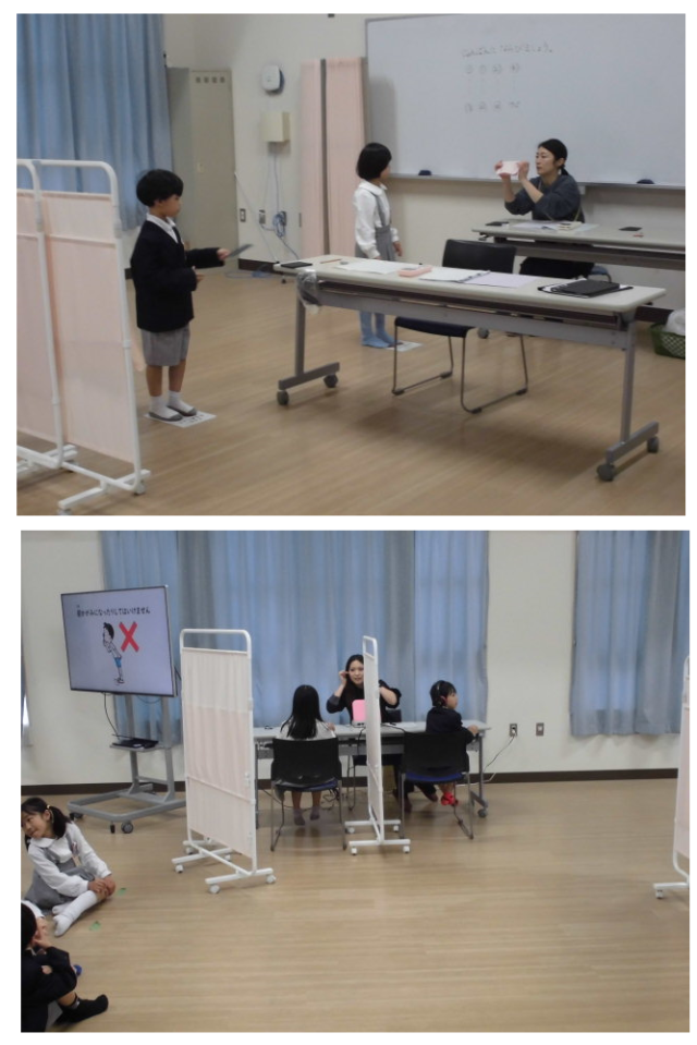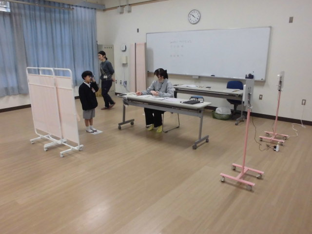 1年生にとっては、初めての視力・聴力検査の様子です。