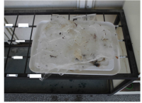 教室前の傘立ての上に写真のような氷が置いてありました。学校の池にでも張っていたの...
