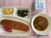 今日の給食は、 ・鶏肉のカレー風味焼き ・スープ煮 ・野菜のソテー ・黒糖パン ...