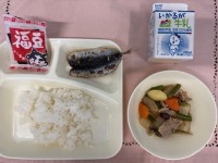 今日の給食は、・いわしのしょうがじょうゆかけ・含め煮・いり大豆・ごはん・牛乳節分...