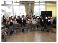 教室から、校歌が聞こえてきました。1年生の教室から大きな声が響いていました。歌詞...