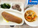 今日の献立は、コッペパン・アプリコットジャム・鶏肉のバジル焼き・ウインナーと野菜...