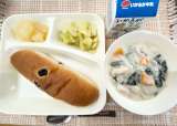 今日の献立は、レーズンパン・ほうれん草のクリームシチュー・キャベツのサラダ・洋な...