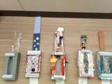 みんなで楽器を作りました。弦の数も様々です。演奏会が楽しみです。
