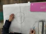 子どもたちが作品袋に絵を描いています。みんな思い思いに描いています。ゆっくり考...
