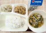 今日の献立は、ごはん・豚肉のコチジャンいため・鶏肉とはるさめのスープ・もやしのナ...