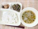今日の献立は、ごはん・さけのつけ焼き・五目汁・高野どうふのいり煮です。 『牛乳...