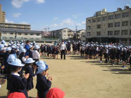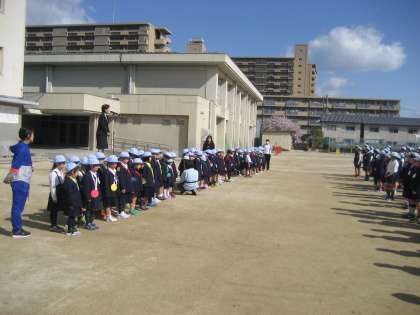 二人で手をつないで入場し、全校児童の前に並ぶ様子がとてもかわいかったです。