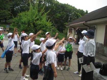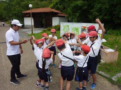 春の校外活動に代わる、今年度からの新しい取り組みです。午前中は1〜6年生で構成された班『わくわく班』でポイントを回っていくウオークラリーを行いました。6年生の班長を中心に5、6年生がリードして各ポイントでゲームをしたり、クイズに答えたりして進んでいきました。34班すべてがほぼ時間通りに戻りゴールしました。その中でも6−B班が最高得点で閉会式で表彰されました。