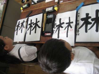 7月9日火曜日に習字の学習をしました。「林」という字を書きました。子ども達はそれぞれめあてをもって一生懸命集中して取り組み、立派な「林」という字を書くことができました。