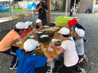 活動班のみんなで協力しておいしいカレーを作ることができました。自分たちで作ったカレーライス。みんなモリモリ食べていました。食べすぎには注意してくださいね!