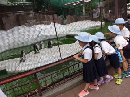子どもたちは夢中できりんやライオン、ペンギンなどを見ていました。
